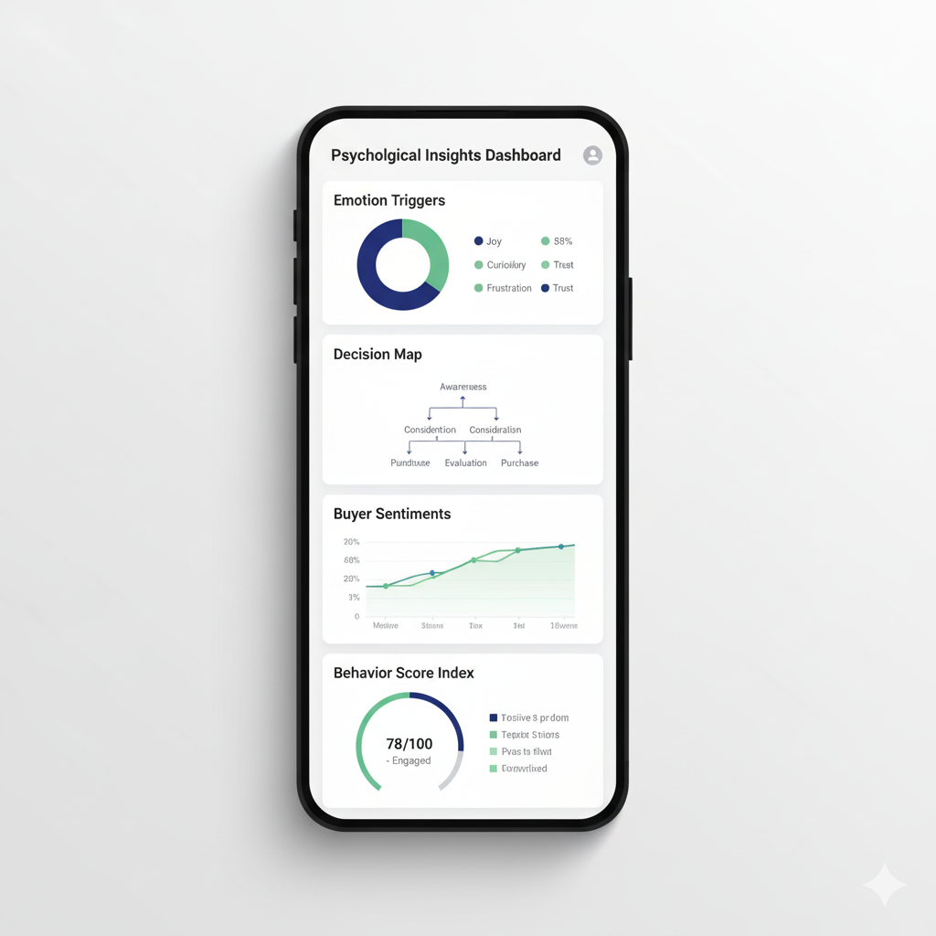 Consumer psychology insights revealing emotional triggers & buying motivations.